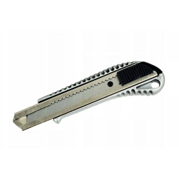 Nóż tapicerski wykonany z wysokiej jakości metalu. Ostrze łamane. Metalowa prowadnica.